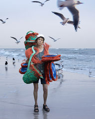 Beachcombing (strandjutten in Dutch) is a term to describe the scavenging of things washed up the shore. The project is a design fiction scenario in which people who live in villages near the sea have come up with a new handcraft to clean up the shorelines. They are passing their days collecting nets and ropes that have been washed up the shore, a by-product from unsustainable fishing industries. Beachcombers represent the future of handcrafted souvenirs, influenced by marine pollution.