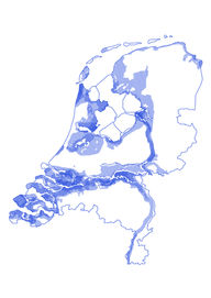 In the year 2100 the sea level will rise 1 meter or more. ‘The new coastline’ at 0 NAP, cuts through both rural and urban areas through provinces like Zeeland, Noord Brabant, Utrecht, Gelderland and Groningen, and more. Landscape photographer Rubén Dario Kleimeer and designer Gundega Strauberga have been translating scientific data into photos, maps, graphs and timelines. The duo has been portraying specific locations in the Netherlands in order to observe how these changes will influence the future of the Dutch landscape. The rising of the sea levels will doubtlessly change the face of the current Dutch landscape and shift the proportions between urban and nature areas. The photographs are inspecting the use of hybrid, appropriated spaces. They are confronting the viewer with the degree of exposure or, on the contrary, the non-visibility of water rise, at times also the denial and rejection of change, ignorance and short-sightedness. Can we give room for non-human species and natural phenomena to take place, and to what degree? The project is a study of man’s constructive reality versus nature’s destructive instability. We are looking at the landscape as a metaphor, a prediction and a provocation.
